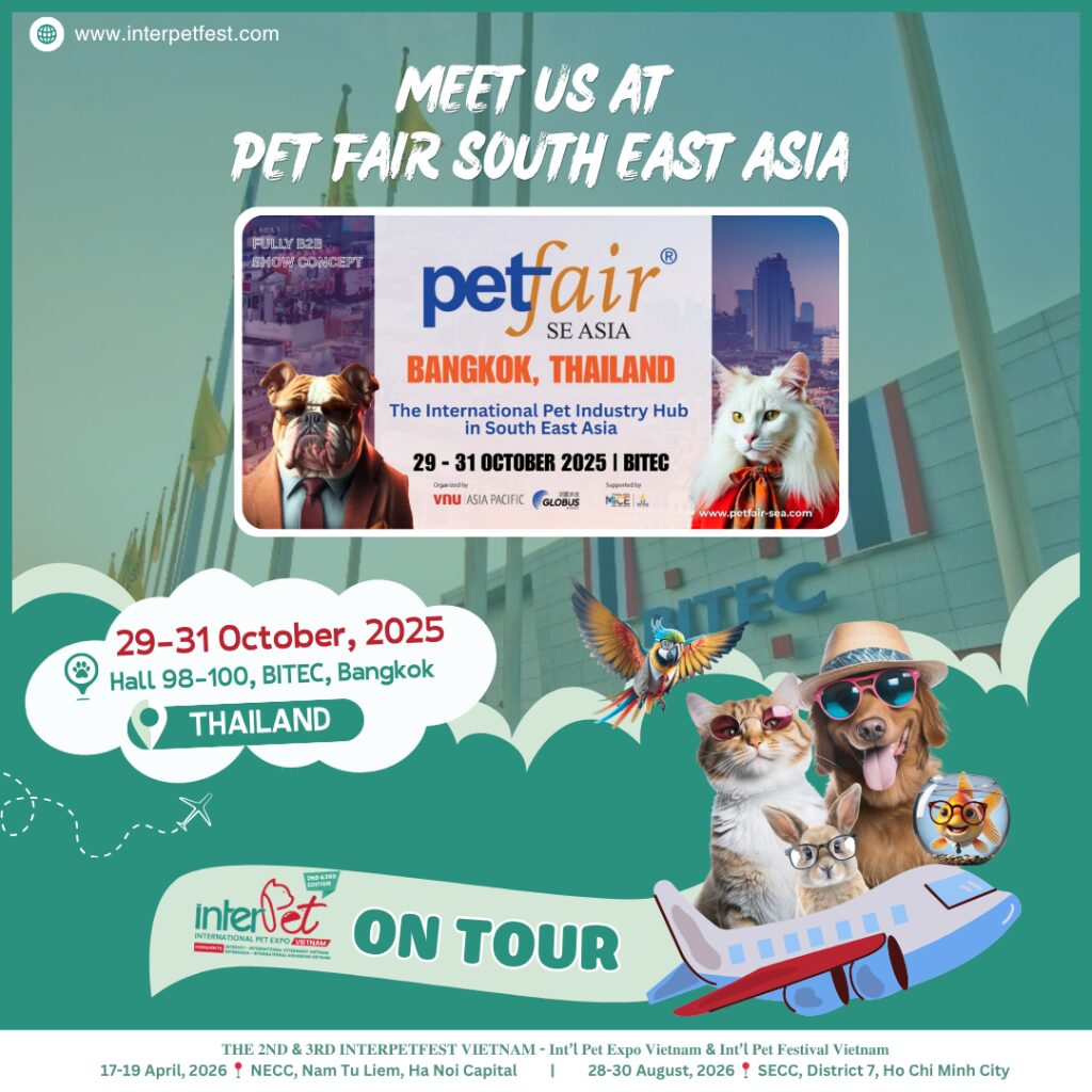 INTERPETFEST ON TOUR – VIETNAM PET BUSINESSES AT PET FAIR SOUTH EAST ASIA 2025! A delegation of 13 Vietnamese pet industry companies has officially arrived at Pet Fair South East Asia 2025 in Bangkok – the largest pet industry event in the region! InterPetFest is honored to be the official organizer of the Vietnam delegation,