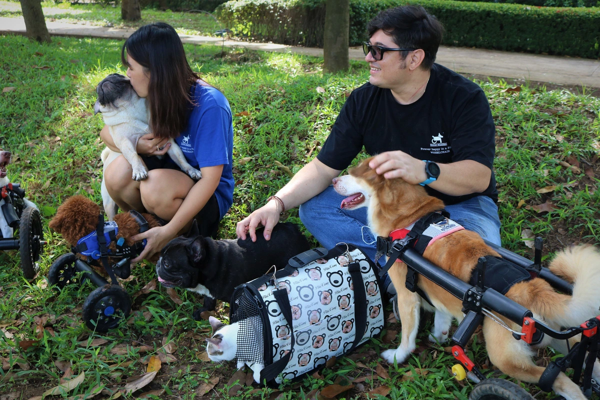 Ca Chim, a dog rescued by Forever Wheelchair, is one of the most memorable stories. Having lost two legs and abandoned on the street, Fish was initially very fearful and would not allow anyone to approach. Thanks to the love and care from Oscar and Thư, Fish gradually overcame its fears and skillfully used the wheelchair as new legs, living confidently and happily. The story of Fish and many other disabled dogs and cats has been revived by Forever Wheelchair, providing new lives through wheelchairs, serving as a testament to unconditional love.