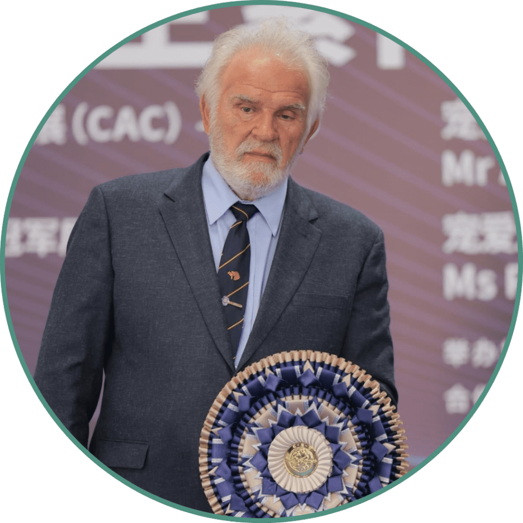 Mr. Nenad Davidovic is an FCI All-Round Judge with 51 years in cynology, judging globally including at EURODOG and EUROASIA. He has led the Kennel Club Gornji Milanovac and the Kennel Club of Serbia, and breeds Irish Setters and Golden Retrievers with his wife, Natasa.